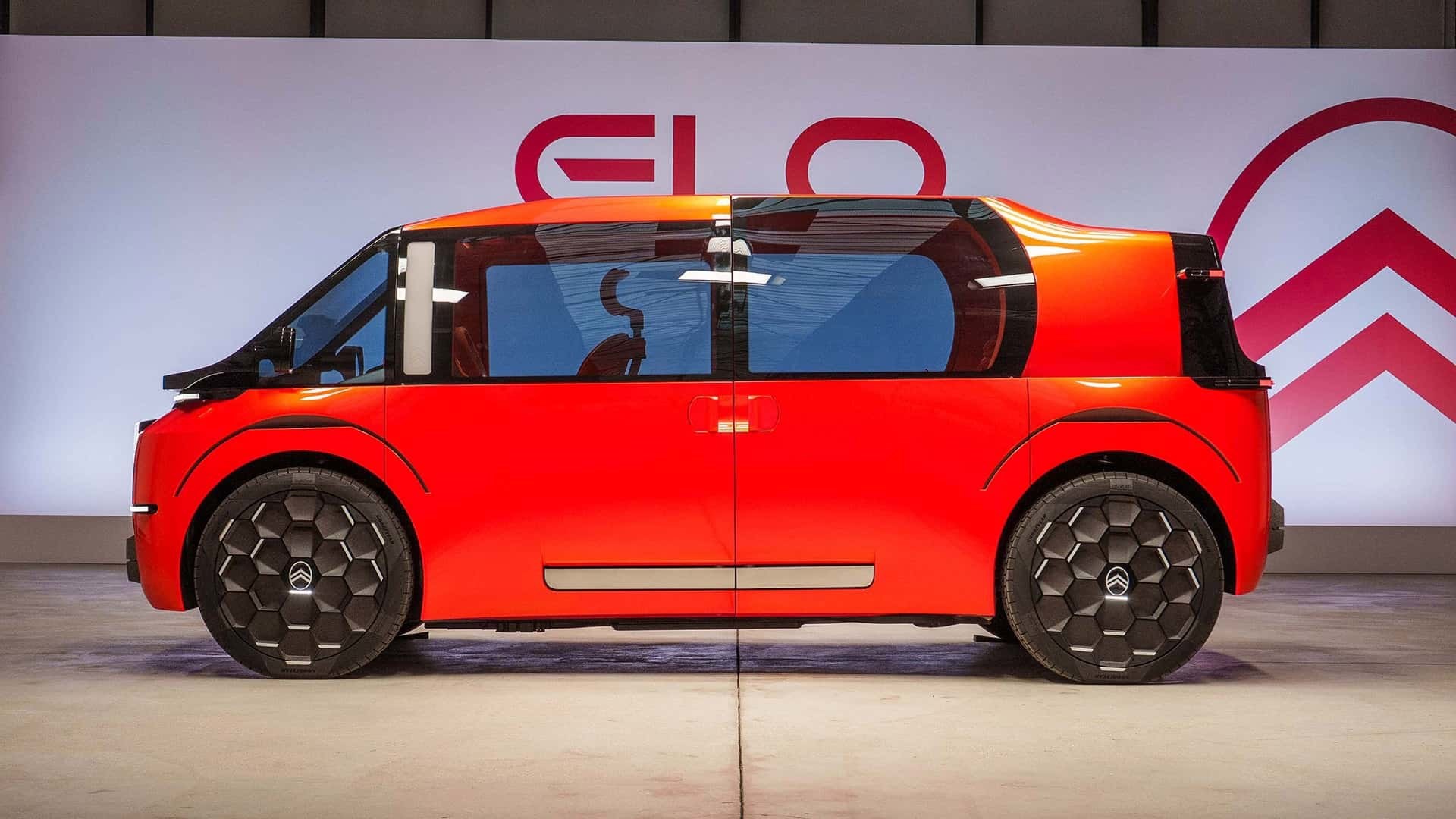Elo donosi potpuno novu siluetu s naglašenim staklenim površinama i kliznim vratima koja otvaraju impozantan ulaz širok 1,92 metra. Prednji kraj nosi velika kvadratna LED svjetla i osvijetljeni Citroenov znak, dok se isti pristup ponavlja i straga. Krov lagano pada prema stražnjem dijelu, a kotači od 21 inča, s futurističkim poklopcima, dodatno naglašavaju konceptni karakter vozila.