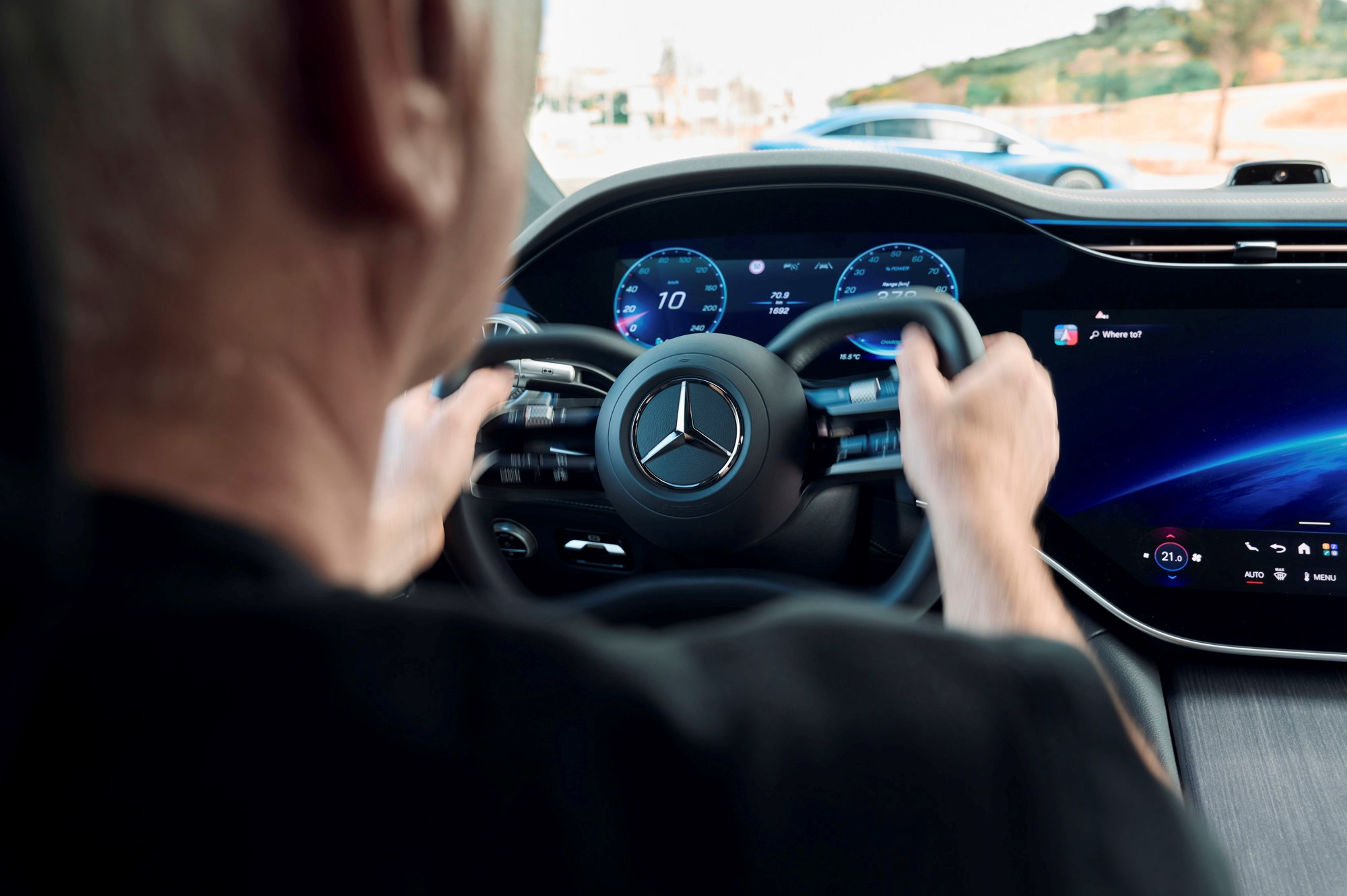 Prema Mercedesu, ovakav dizajn omogućuje više prostora u kabini te olakšava ulazak i izlazak iz vozila. Također, poboljšava se preglednost jer volan više ne zaklanja dio digitalnih instrumenata.