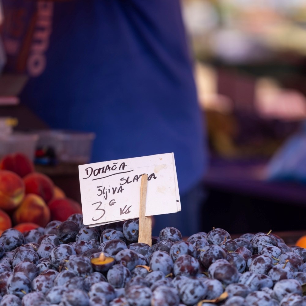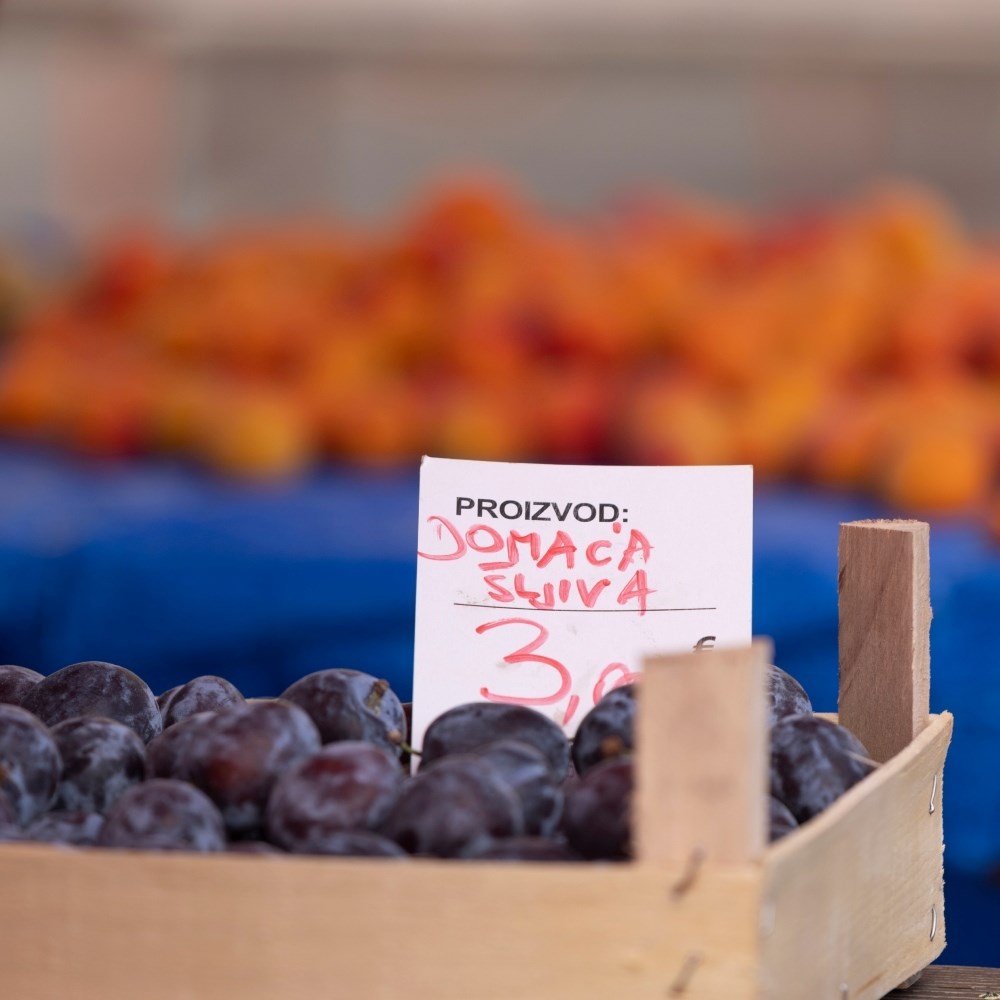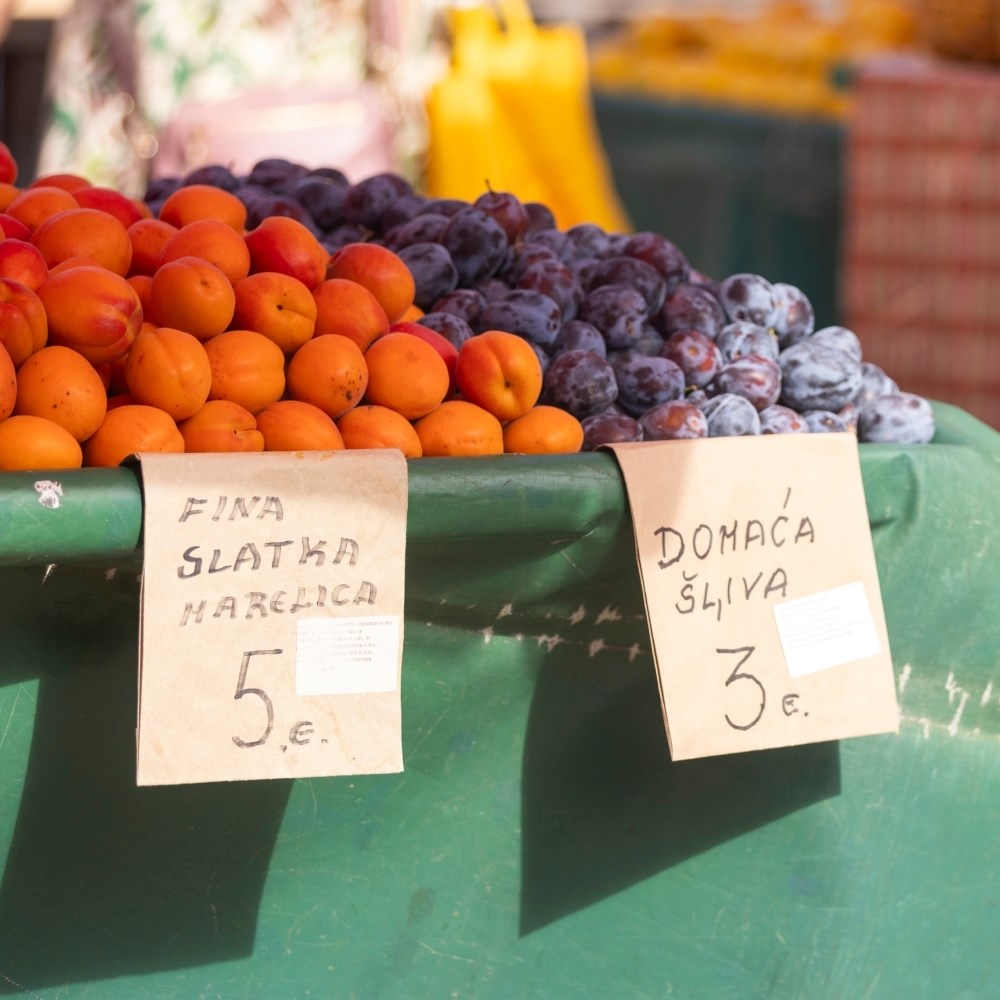 Domaći slatki hrušt (trešnja) košta 10 eura za kilogram, a na Dolac su stigle i prve šljive, koje se uglavnom mogu pronaći po cijeni od 3 eura za kilogram. Domaće kruške koštaju između 3 i 3.50 eura za kilogram.