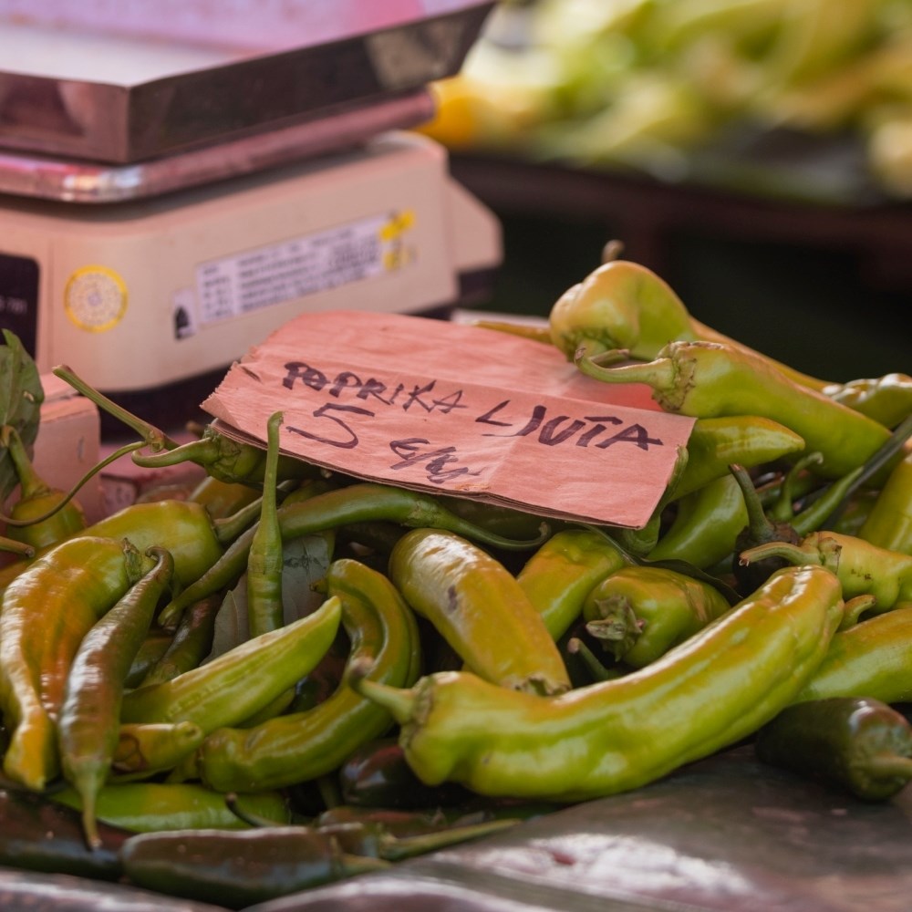 Paprika košta 1 euro za kilogram, 3 rog paprike prodaju se po cijeni od 2 eura, a ljute paprike koštaju 5 eura za kilogram. Mladi krumpir košta euro po kilogramu, a jednako ćete platiti i 3 glavice kupusa i jednu vezicu raštike.