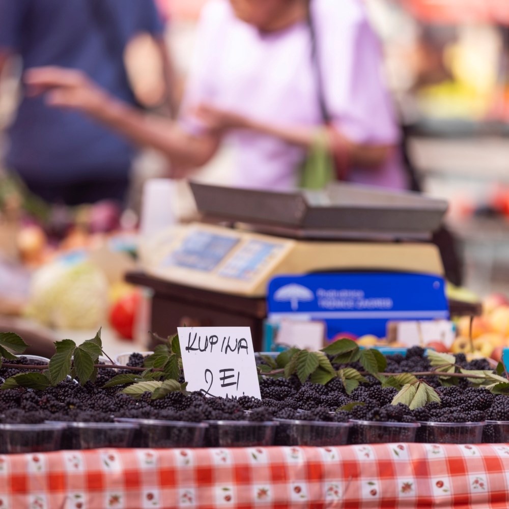 Od voća, još smo pronašli i domaću breskvu za 4 eura i kupine za 2 eura, a na jednom smo štandu pronašli i nešto orašastih plodova - orasi se prodaju po cijeni od čak 10 eura za kilogram.