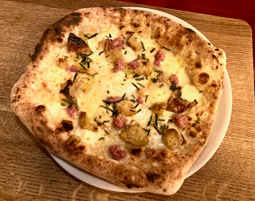 Moji će vjerni pratitelji ostati uskraćeni za uobičajeni užitak komentiranja budući da Luca u ponudi nema pizzu s mortadelom i pistacijom. A budući da u ponudi nije bilo moje omiljene pizze izabrao sam Patate e Salsiccia, pizzu s krumpirom i talijanskom tradicionalnom kobasicom.