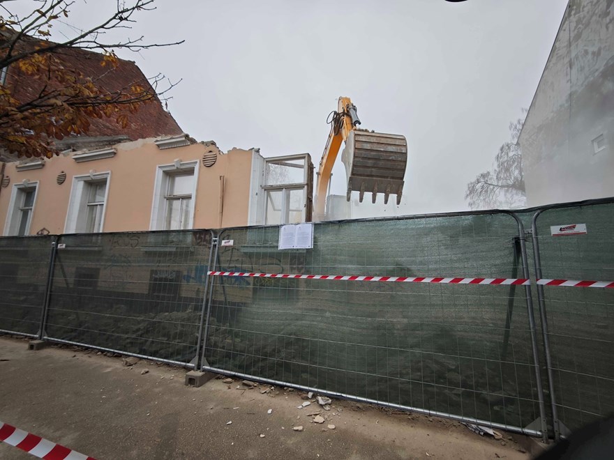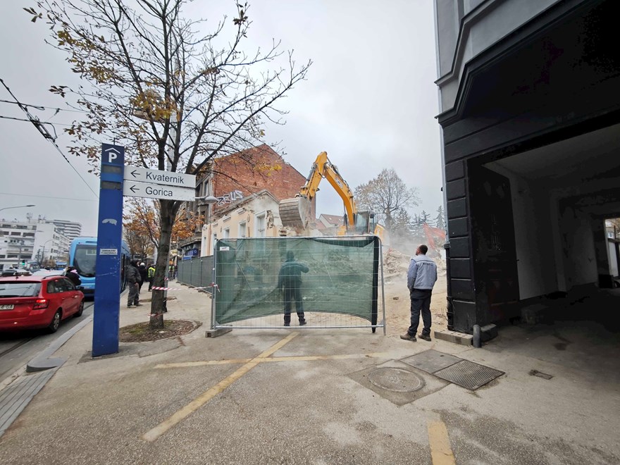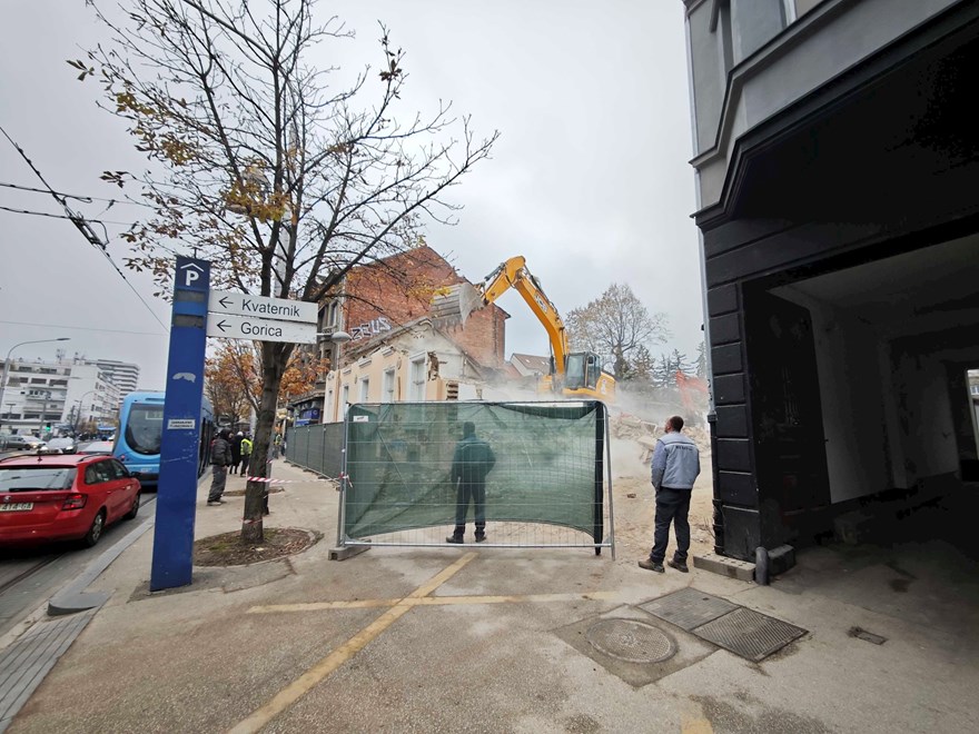Jutros smo prošli pokraj zgrade u trenutku kada su na lokaciju stigli radnici s bagerima i započeli rušenje.