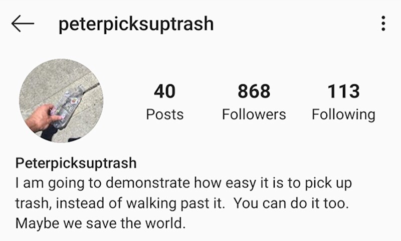 S vremena na vrijeme na društvenim mrežama naiđemo na zaista čudne profile, no malo koji je plemenit kao ovaj. Nalazi se na Instagramu i registriran je pod korisničkim imenom "Peterpicksuptrash", a kada čujete razlog, shvatit ćete da je riječ o čovjeku koji zaslužuje da ga se pohvali za ideju.