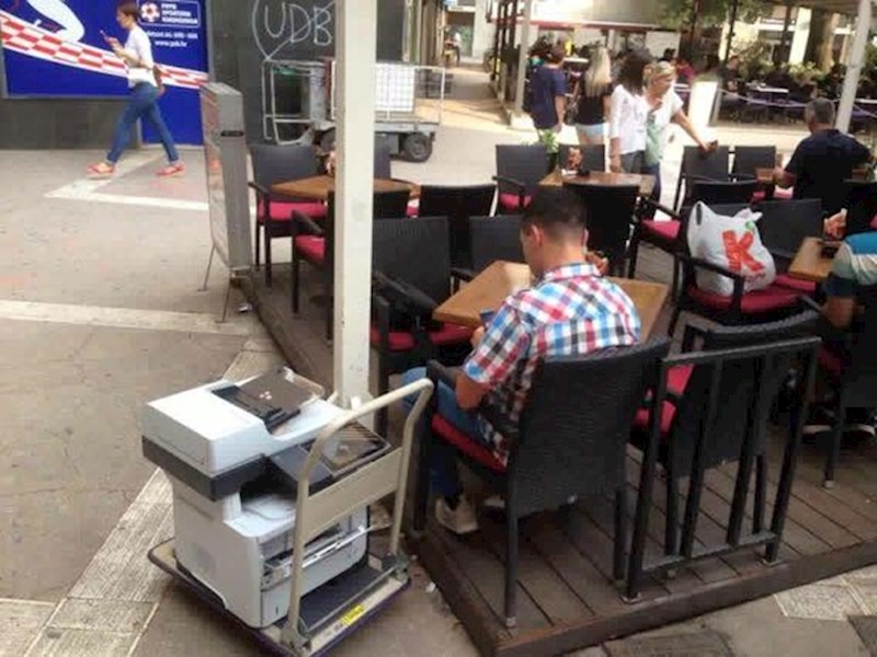 "Čuo je da ne radi kopirka u PSK-u, uzeo je svoju da ima isprintanu ponudu uz kavu.", misli Hrvoje.
