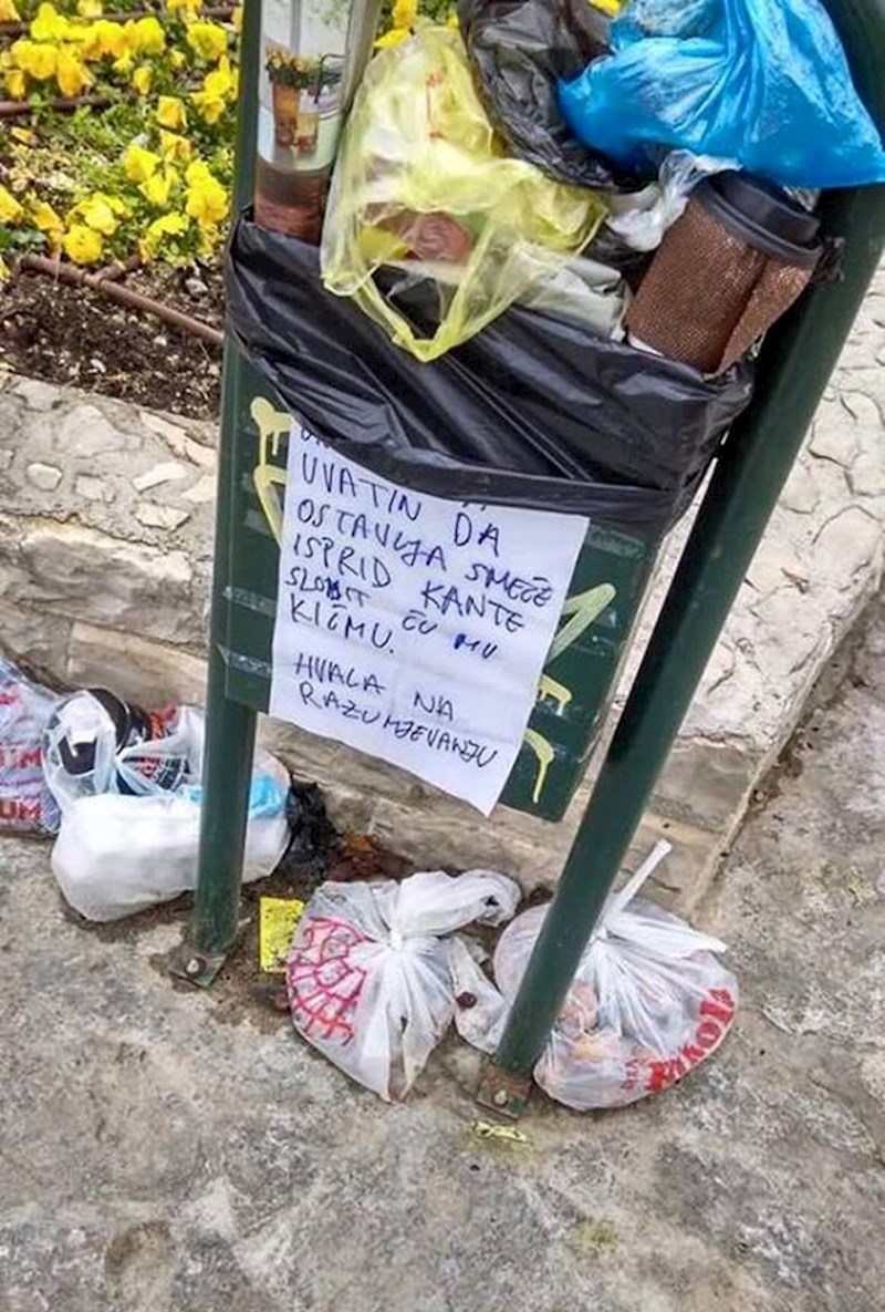 Ni lomljenje kičme nije više dovoljna prijetnja. Nepoznata osoba zaprijetila je upravo time, ali ljudi su i dalje ostavljali smeće oko kante. Problem je jasan, kanta se očito ne prazni dovoljno često.