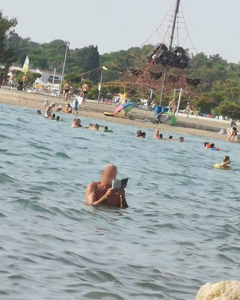 Iz Dalmacije stiže još jedna čudna slika s plaže. Netko je slikao starijeg gospodina koji je čitao JAKO zanimljivu knjigu, nije se mogao odvojiti od nje. :-)