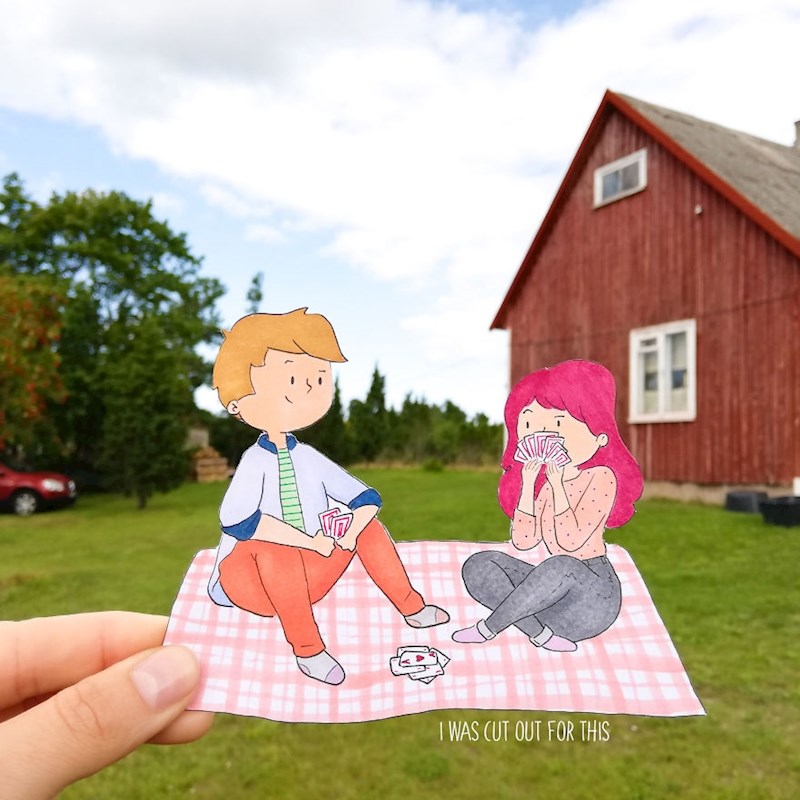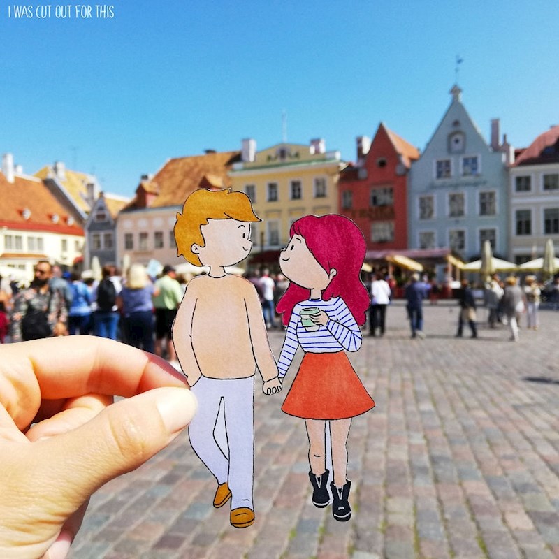 Prije putovanja pripremila je crteže sebe i svog dečka koje je izrezala i ponijela sa sobom na put. Svaki put kada je htjela nešto slikati, uzela je jedan izrezani crtež te ga slikala, a pozadina su bili prizori iz grada u kojem su se nalazili.