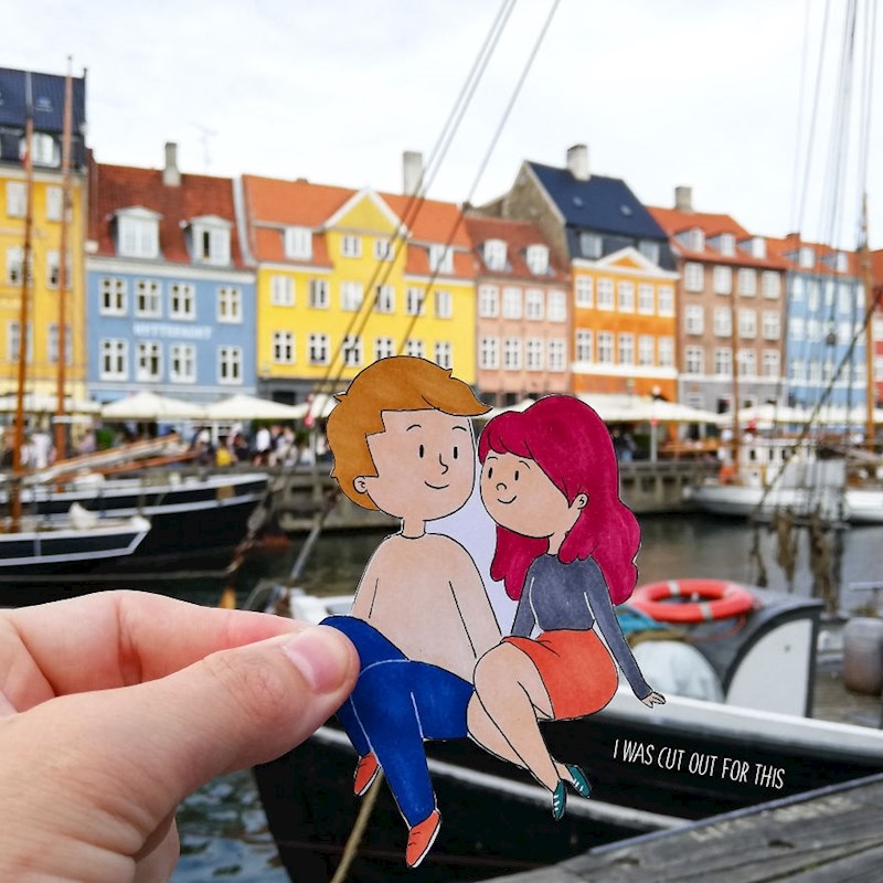 Tako je stvorila vrlo simpatične i zanimljive slike koje je odlučila objaviti na internetu. U međuvremenu joj je to postala tradicija pa tako sada na svako putovanje nosi crteže sebe i dečka i slika ove slatke uspomene s putovanja. Pogledajte neke od njih.