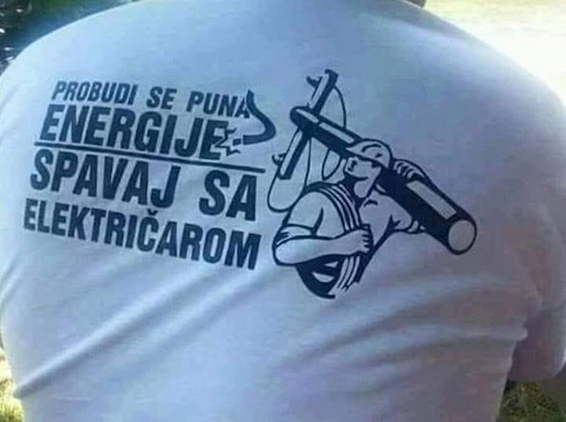 Električar je obukao majicu s natpisom s kojim bi trebao biti privlačniji ženskom rodu