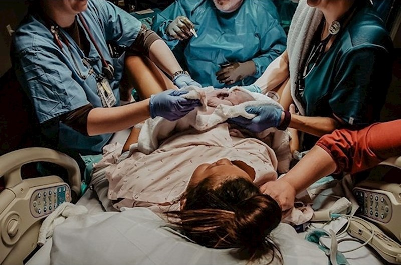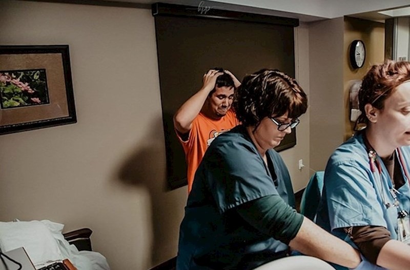Kirstie Perez je fotografkinja koja je slika već mnoge porode, no ovaj slučaj je iznenadio čak i nju. Slikala je ženu koja je tijekom trudnoće imala hiperemezu, sindrom koji uzrokuje jako povraćanje, mučninu, gubitak kilograma i elektrolita. Njen muž je naravno bio uz nju, ne samo na porođaju, nego i prethodnih 4 puta kada je žena zbog spomenutih problema završila u bolnici. Tijekom trudnoće izgubila je više od 10 kg.