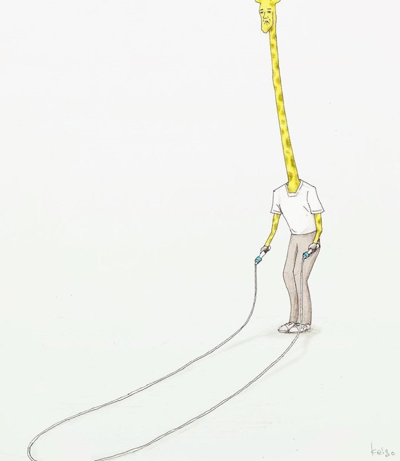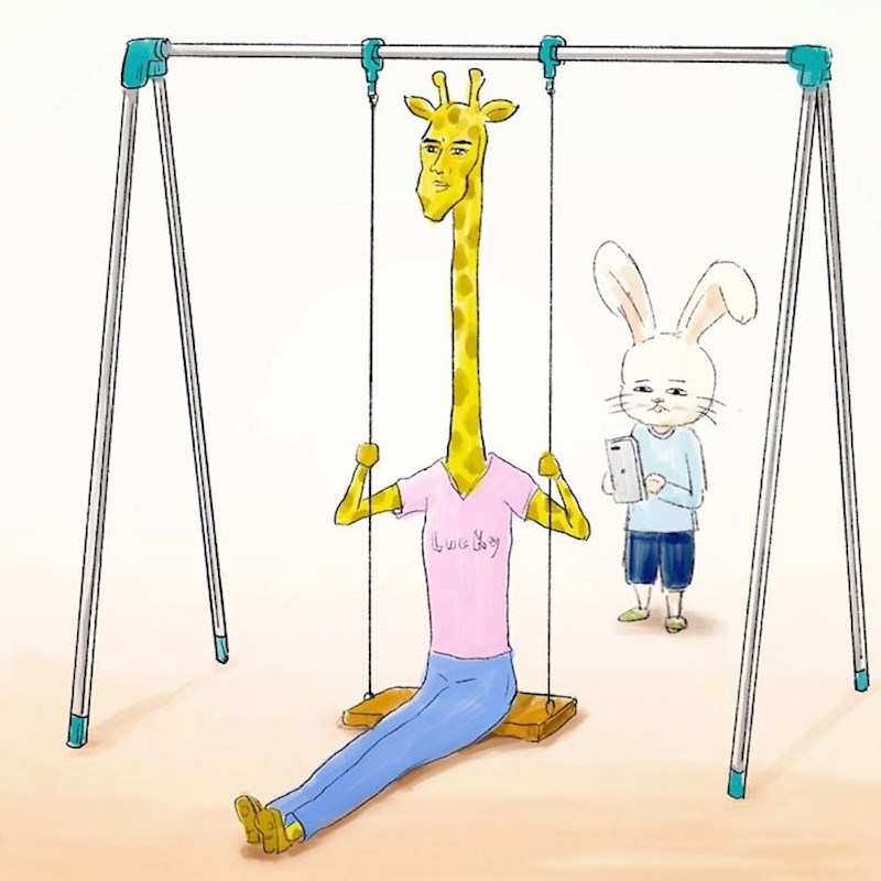 Jeste li ikad razmišljali kako bi izgledao svijet u kojem se životinje ponašaju kao ljudi? Talentirani japanski umjetnik Keigo je svojim ilustracijama dokazao da bi to izgledalo jako čudno... i jako smiješno. Primjer? Žirafa!