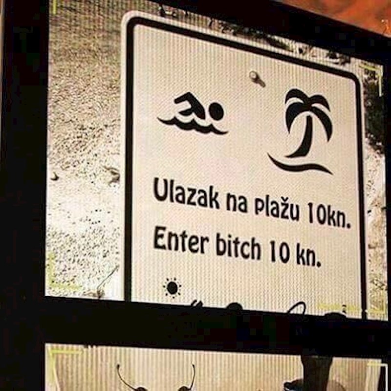 Tako je, katastrofalno "prijevodi" ili bolje rečeno pokušaji prijevoda. :) Pogledajte poruke koje su ljudi slikali na Jadranu, a koje su najčešće namijenjene turistima.