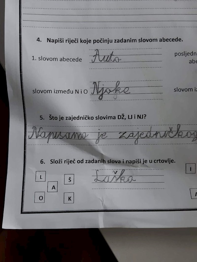 Za ovo dijete bi se moglo reći da je jedna od onih osoba koja ne razmišljao kao svi ostali, nego na vlastiti način. Mali učenik je u zadatku u kojem je morao složiti riječ od ponuđenih slova pronašao jedno potpuno neočekivano rješenje.