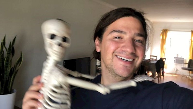 Lik je "posvojio" uplašenog kostura, na urnebesan način je prikazao kako je postao član obitelj