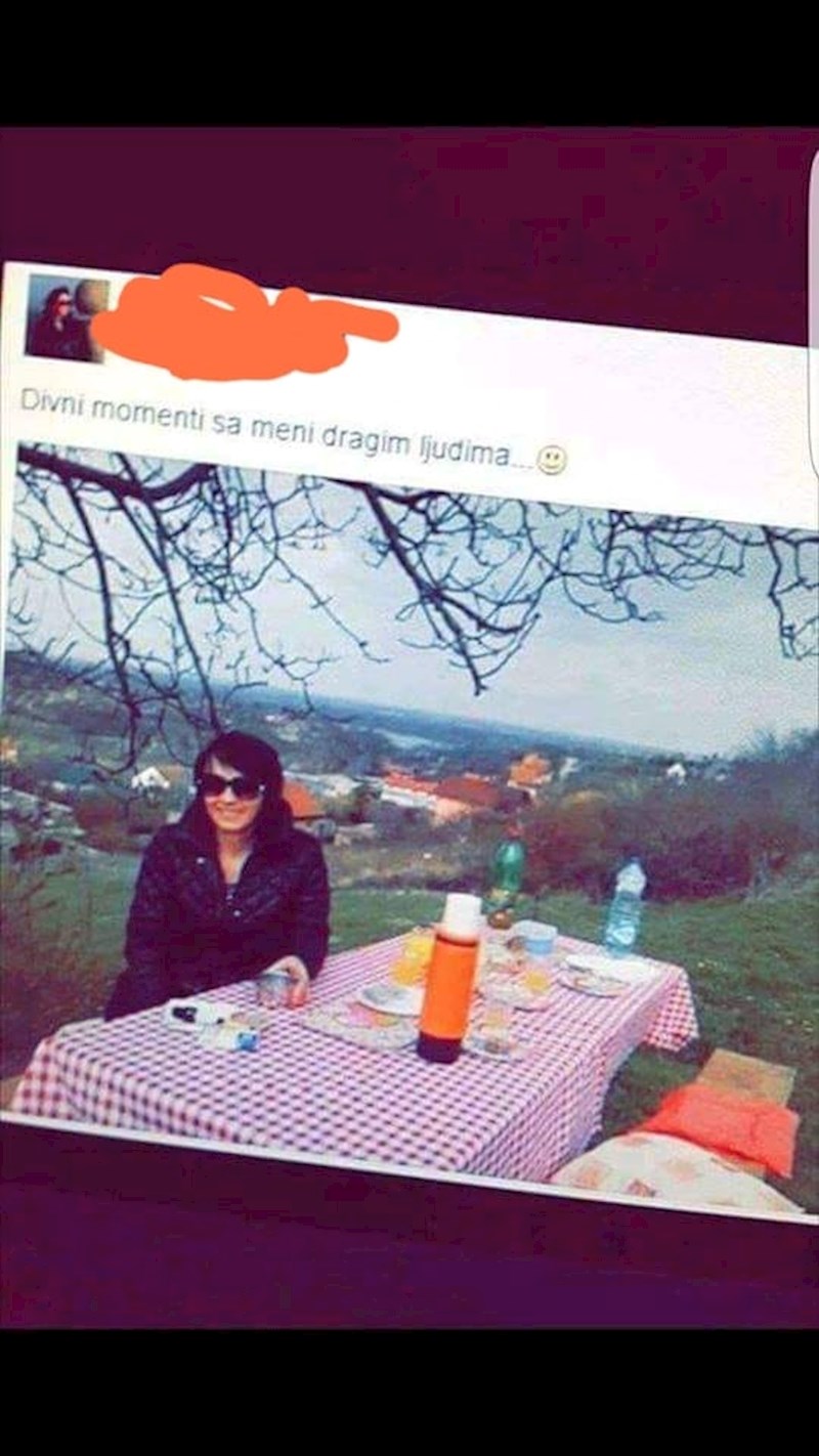 Ova žena je htjela slikati "divne momente s dragim ljudima", no jedan mali problemčić je fotku učinio puno zanimljivijom. U tom trenutku nitko osim nje nije bio za stolom pa je izgledalo kao da se druži sama sa sobom te da "njoj dragi ljudi" ni ne postoje. :)