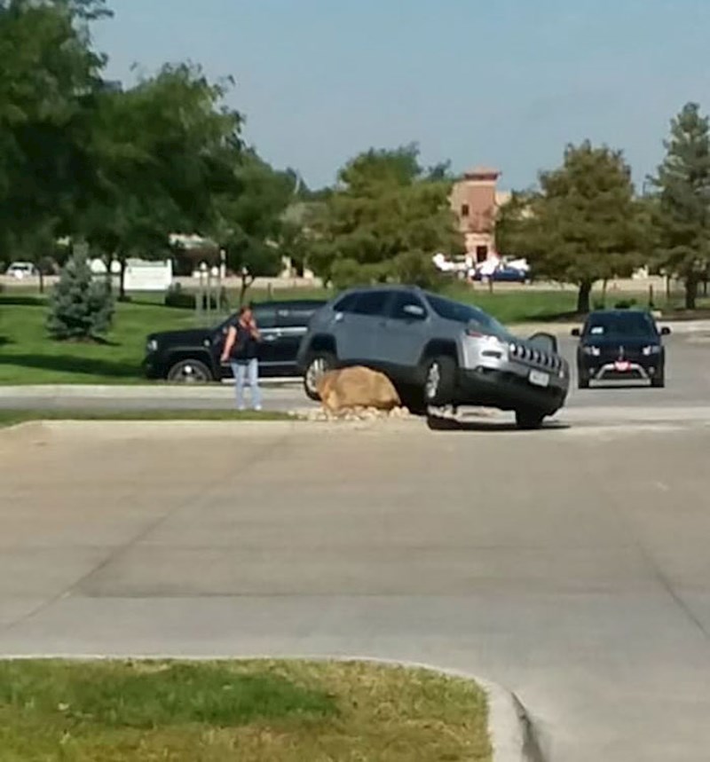 Stijena u zapadnoj Omahi u SAD-u privlači pažnju zbog njene sposobnosti uništavanja automobila. Netko je stijenu postavio na mjesto kako bi zaustavio vozače koji sijeku kut i prelaze preko cestovnog rubnika, ali neki to i dalje rade.