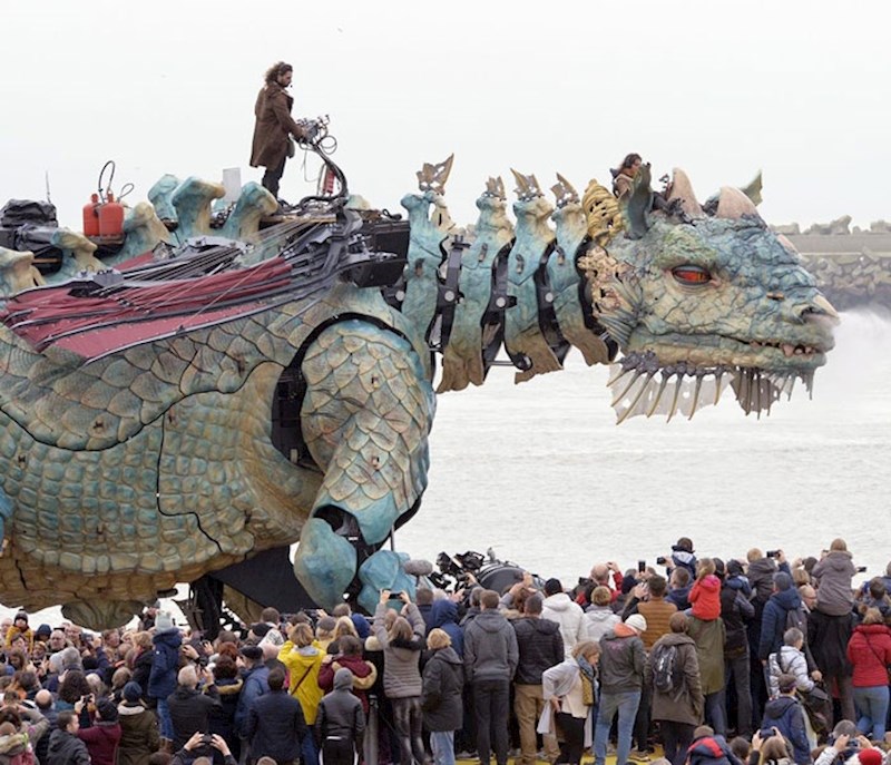 Društvo uličnog kazališta La Machine kreativan je tim ljudi iz Francuske. Uz puno truda sagradili su gigantskog, potpuno funkcionalnog mehaničkog zmaja koji čak i riga vatru.