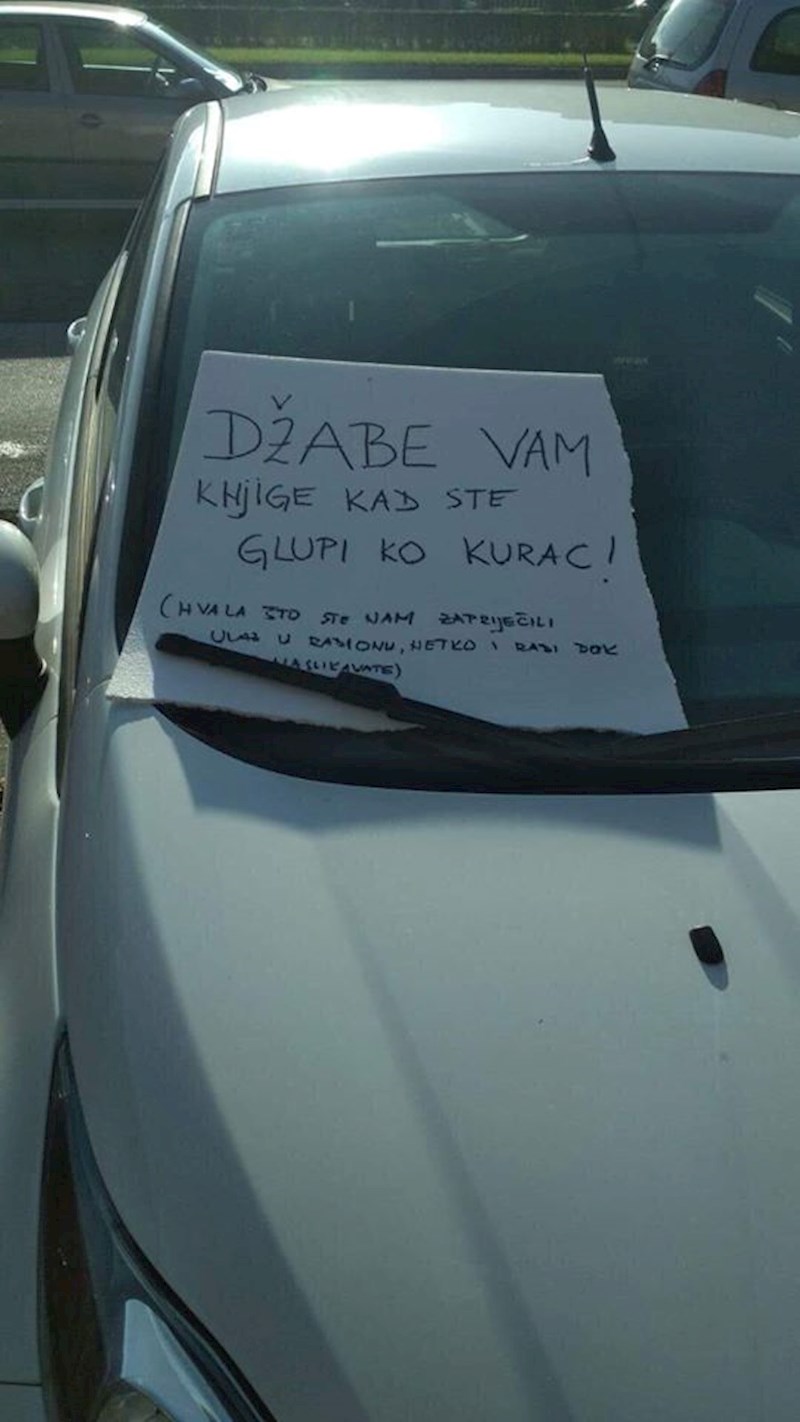 Ne parkirajte aute na nedozvoljenim mjestima jer bi i vas mogla jednog dana dočekati ovakva poruka (a naravno i kazna). :)
