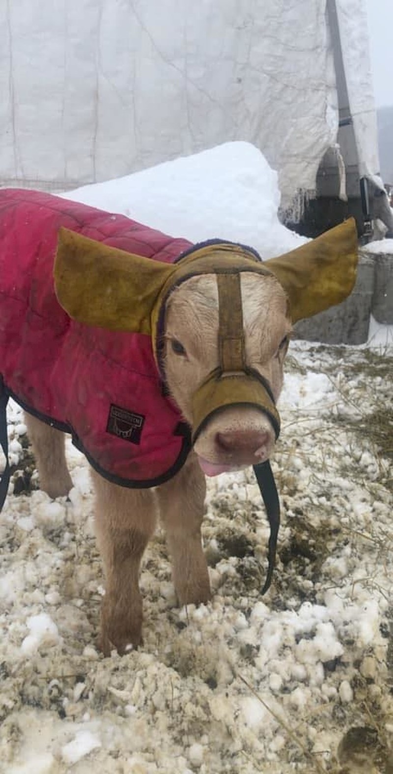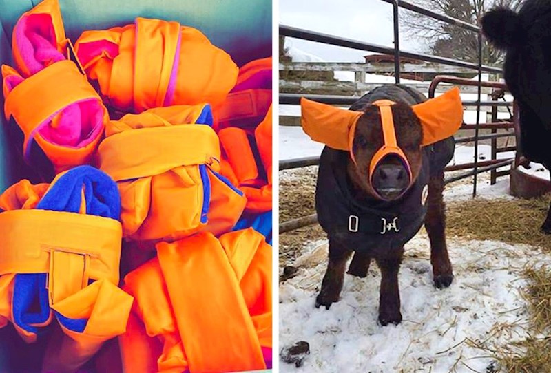 Uši su dio tijela koji je najosjetljiviji na niske temperature. Kada je farmerica Holly Poad iz Wisconsina izgubila štalu u požaru, trebala je drugi način kako zagrijati krave od smrzavanja. Tako su nastala ova pokrivala za uši.