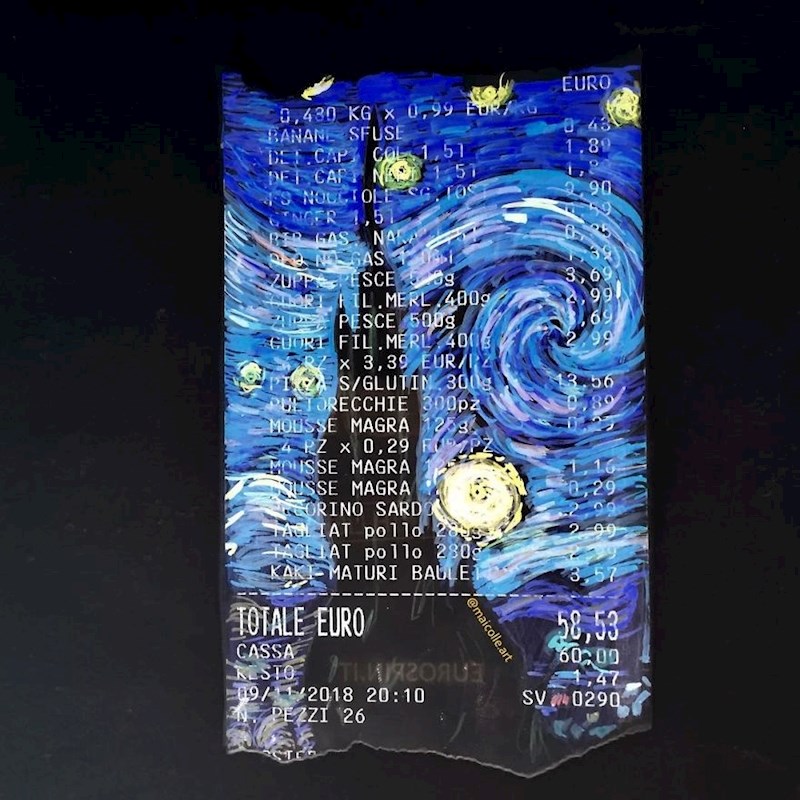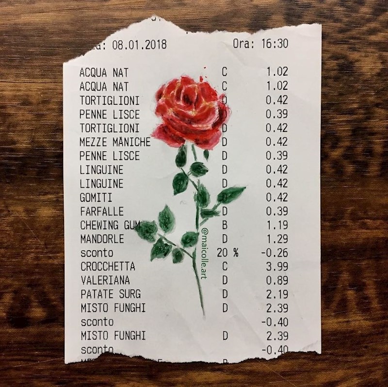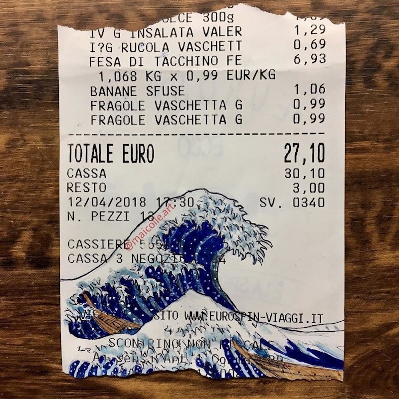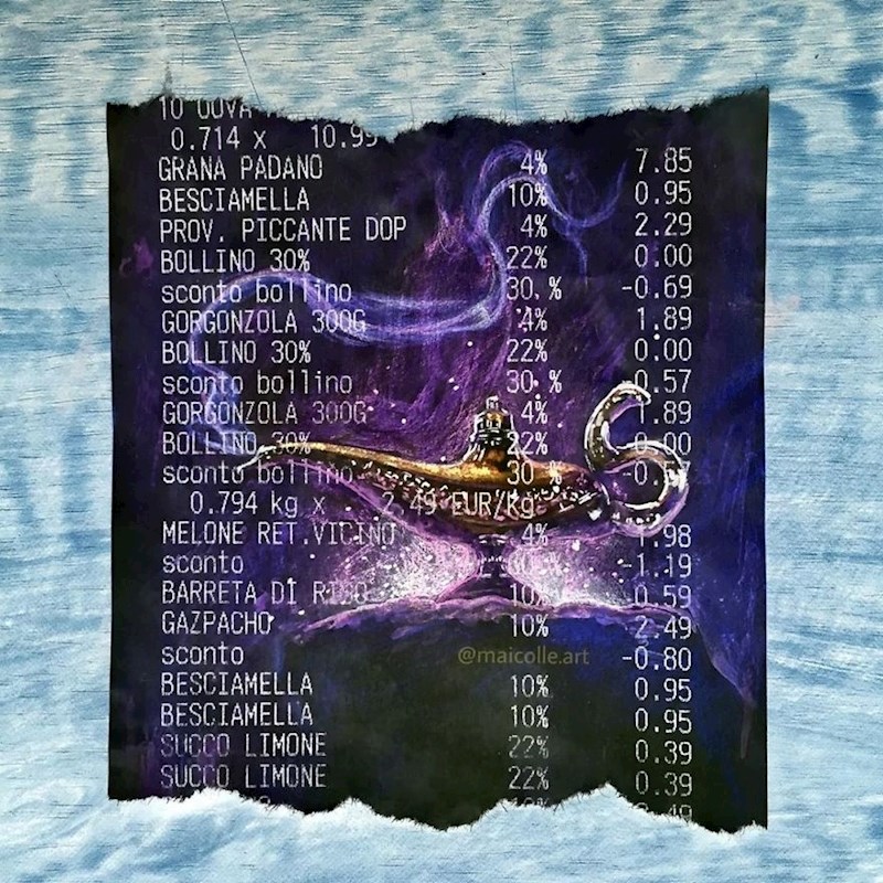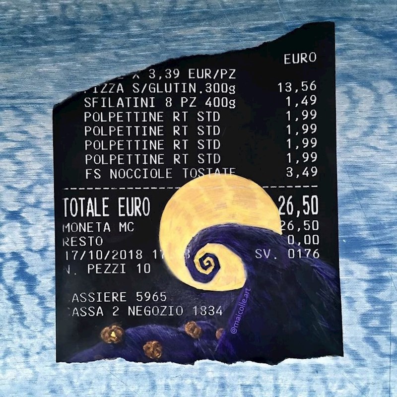 Talijanski 22-godišnji umjetnik Michael Moccia svakodnevno koristi račune iz trgovine kako bi oslobodio svoju kreativnost i pokazao svoje nevjerojatne slikarske vještine. Začudo, moramo reći da prisutnost brojeva i riječi nekako čini njegovu umjetnost još izvanrednijom i primamljivijom! :)