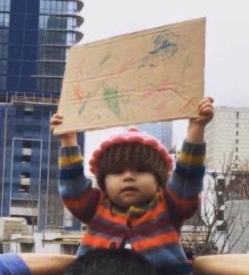 O, da. I ova beba voli sudjelovati na prosvjedima. Na jedan prosvjed je čak ponijela i natpis koji je sama napisala. Sad ćete sigurno pomisliti: "Ma nemoguće!". Moguće je, ali...