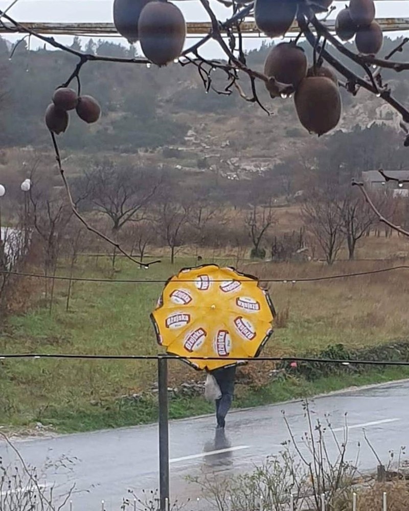 Malo je onih koji vole kišu. Ne znamo je li ovaj gospodin ljubitelj kiše ili ne, no čini se da se jako dobro zna boriti protiv nje. Ništa mu nije moglo pokvariti ovaj dan. Pogledajte što je nosio. :)