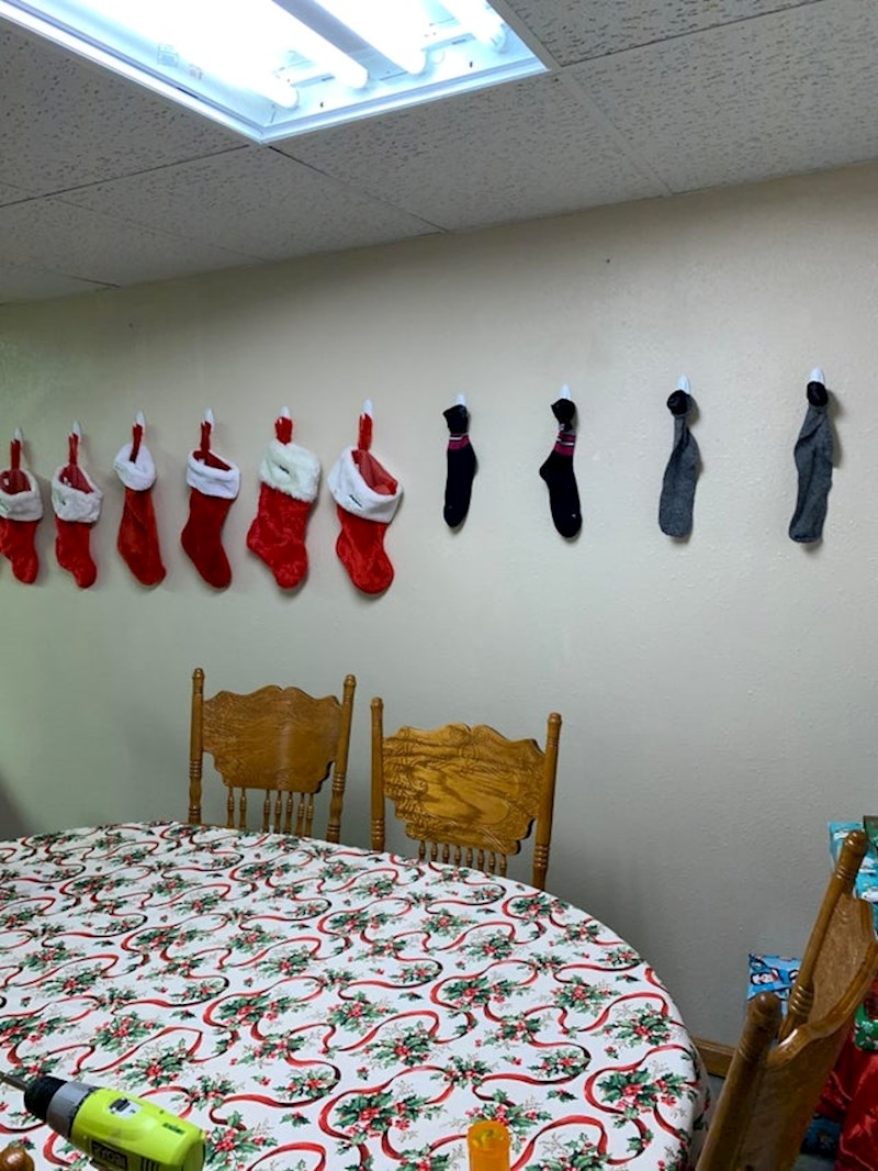 Djed nije mogao pronaći božićne čarape za objesiti na zid pa se snašao na drugi način
