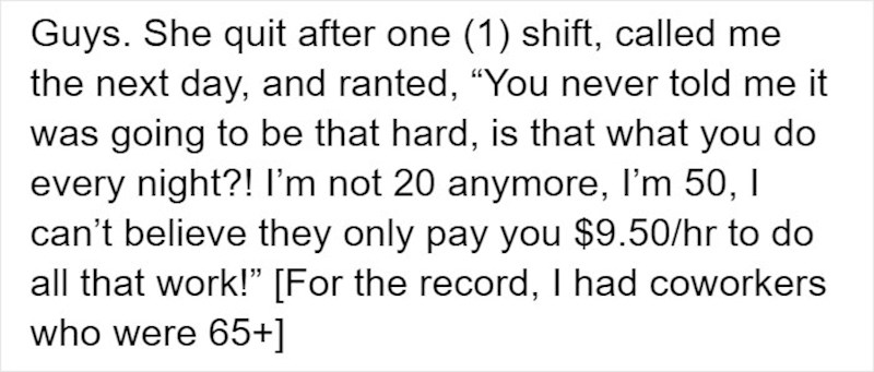 Ljudi, ona je odustala nakon samo jedne smjene!