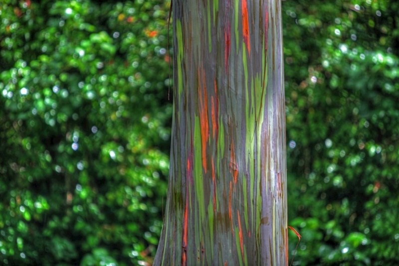 Iako izgleda kao da je netko prošao kistom i ofarbao ga u različite boje - ovo drvo je potpuno prirodno. Zove se Eukaliptus deglupta ili šareni eukaliptus. Ove šare nastaju ljuštenjem kore na vanjskom djelu debla koje se pretvaraju u plave, ljubičaste i narančaste tonove.