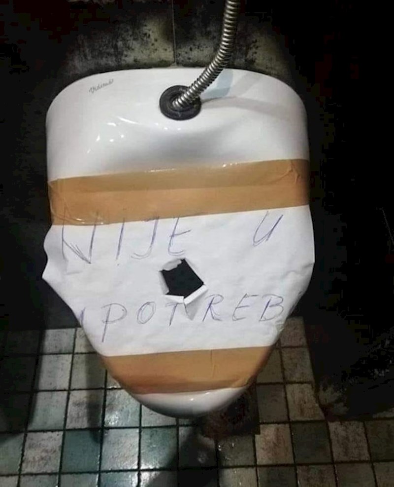 Neki ljudi su stvarno čudne biljke i nemoguće im je stati na kraj. Ova fotka iz jednog muškog WC-a je čisti primjer. Čistačica je zalijepila pisoar i napisala da nije u funkciji, no jednog lika to nije spriječilo da obavi ono što je trebao.