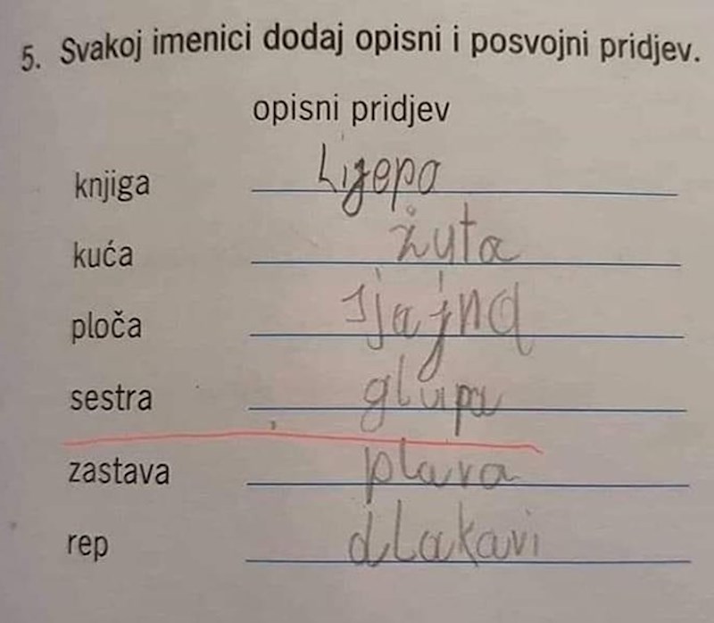 Dijete je svaku imenicu morala opisati pridjevom, jedan odgovor je učiteljicu iznenadio