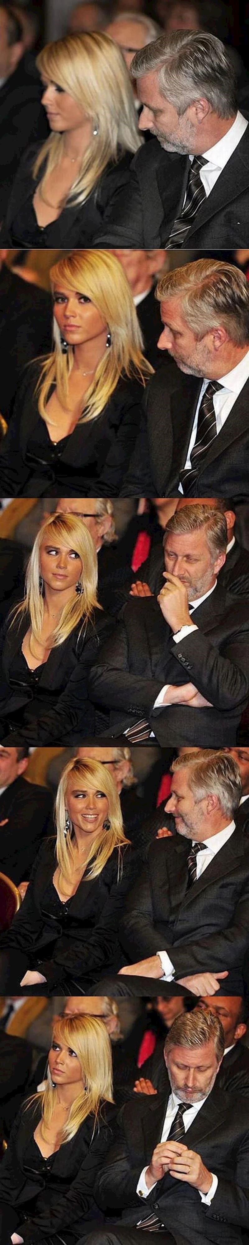 Ovom gospodinu se pogled spustio tamo gdje ne bi trebao. Ona je to primijetila te mu pokazala da je vidjela što radi... :)