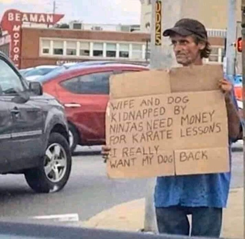 "Nindže su mi otele ženu i psa, trebam novac za satove karatea. Stvarno želim da mi se vrati pas."