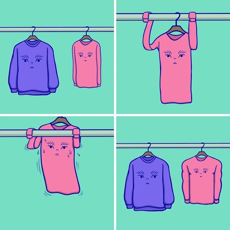 Južnokorejski ilustrator Hung Rae ima jedinstven pristup umjetnosti. U svojim stripovima izvrće ljudske uloge s neočekivanim predmetima i životinjama. Jeste li se ikada zapitali što bi se dogodilo da zaista postoji karma i da tretiramo same sebe jednako kao predmete i životinje koji nas okružuju? Upravo to Rae pokušava prikazati u svojim stripovima.