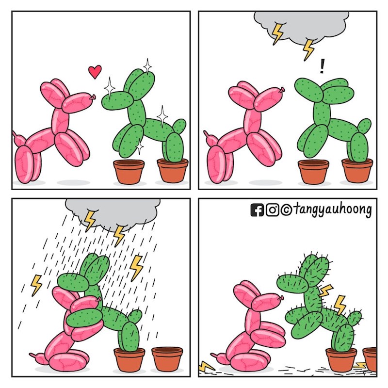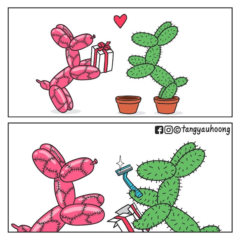 Ljubav je puna iznenađenja i postoji u svim oblicima. Ona nas čini žalosnima i sretnima, zbog nje plačemo i smijemo se. Umjetnik iza Instagram profila tangyauhoong, oduvijek sam se pitao kako može vizualno protumačiti ljubav na kreativan način. Čak i u nedostatku dijaloga, ovi stripovi pokazuju nam da ljubav može biti slatka, gorka, čudna, razigrana, bizarna, dosadna i uzbudljiva.