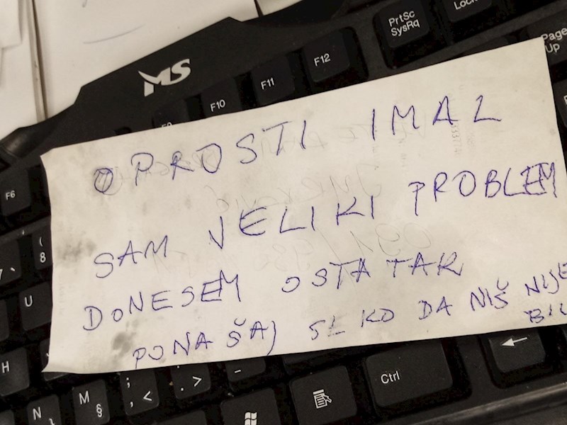 Je li moguće da i u Hrvatskoj ima pristojnih provalnika? Na internetu se pojavila slika na kojoj se navodno vidi poruka koju je jedan provalnik ostavio na tipkovnici u jednoj mesnici.