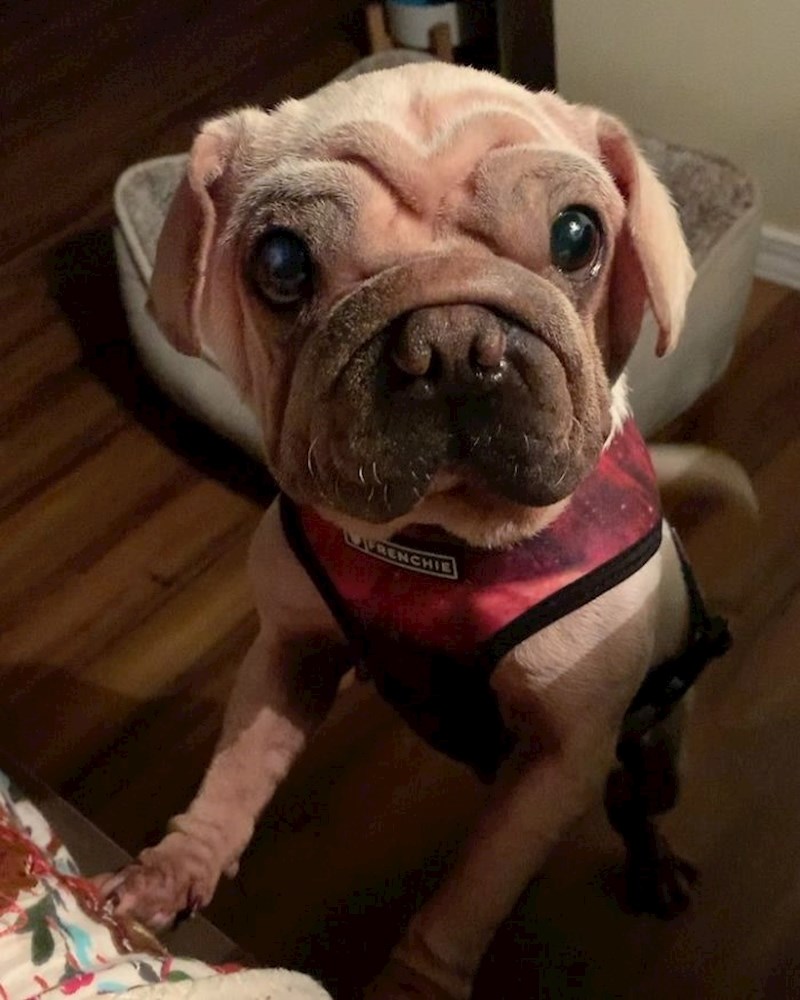 Njegovo ime je Mork i jedna američka organizacija ga je spasila iz klaonice u Kini, gdje bi bio jedan u nizu nesretnih pasa iskorištenih za tamošnju mesnu industriju. Prevezen je u SAD, a kad je došao u Los Angeles težio je samo 5 kilograma, imao problema s crijevima i bio u generalno vrlo lošem stanju. Srećom, od tad je Mork izvrsno napredovao, kao i njegova internetska slava, jer ga na Instagramu sada prati 115 tisuća ljudi.