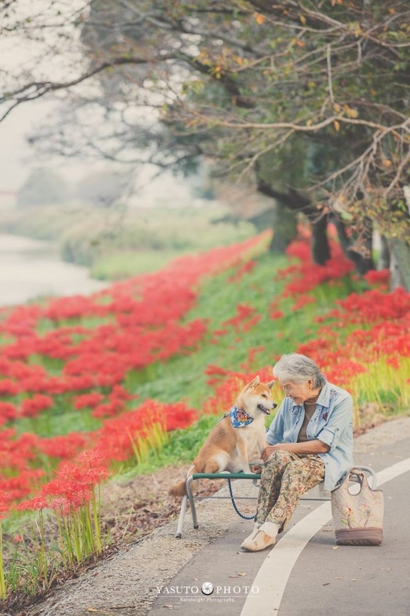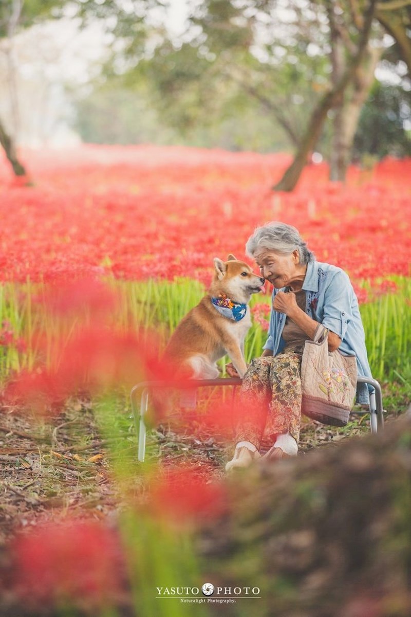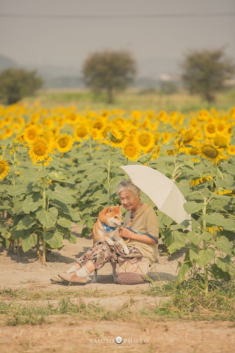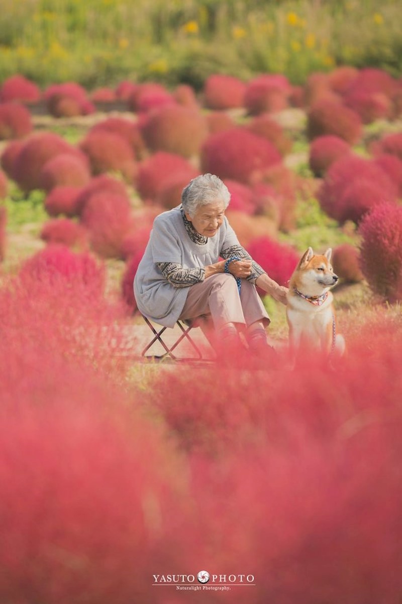 A njezin unuk, japanski fotograf Yasuto, napravio je seriju veselih i pozitivnih fotografija svoje simpatične bake i njezinog najboljeg prijatelja - psa shiba inu. Ono što ove emotivne fotografije dviju prijateljica čini još atraktivnijima je prekrasan krajolik karakterističan za Zemlju izlazećeg sunca.