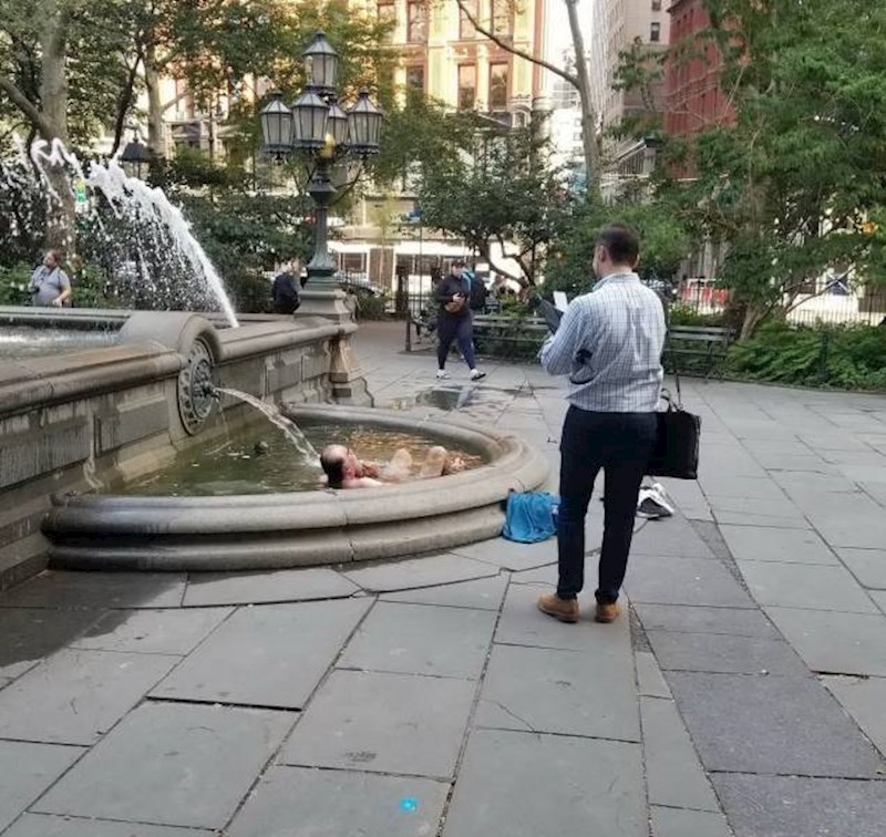 No ljudi koji su svratili po dnevnu dozu odmora u ovaj park nisu uspjeli dobiti svoj mir, ali su zato dobili porciju smijeha. Jedan ludi djedica, ničim izazvan, odlučio je pretvoriti ovu fontanu u svoje privatne terme i tako postao viralni hit.