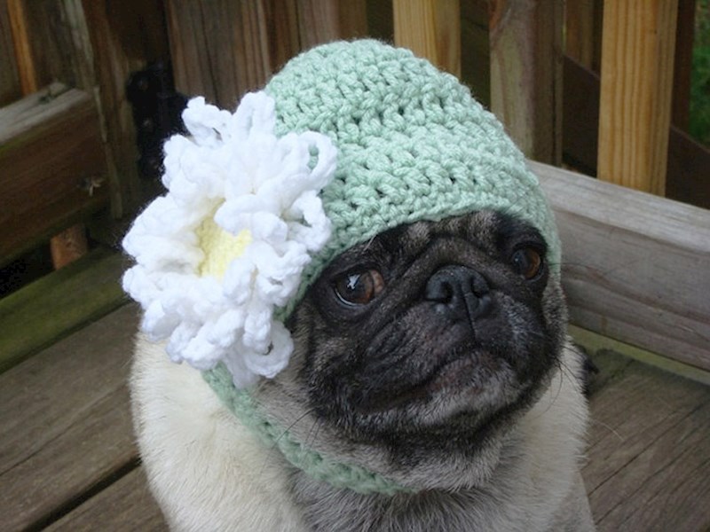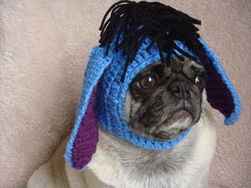 Umjetnica pod imenom 'Sweethoots' na stranici Etsy prodaje kape za pse koje sama izrađuje, a ovo je Pickles, njen pas koji je model na svim fotografijama. Iako i inače izgledaju jako tužno, na ovim fotografijama izgleda tužnije nego ikad. No, ne brinite - to je samo njegov izraz lica. :)