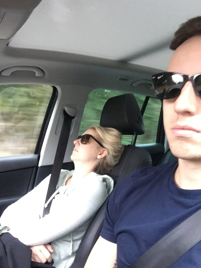 No kada ovaj korisnik Reddita krene na put sa svojom suprugom - nema ništa od toga. Nju san savlada već nakon nekoliko minuta vožnje. Kako bi ilustrirao sebičan pristup supruge prema putovanjima automobilom, "MrMagoo21" sastavio je duhovitu fotogaleriju svih njihovih avantura s puta. Ili bolje rečeno - nedostatka istih. :)