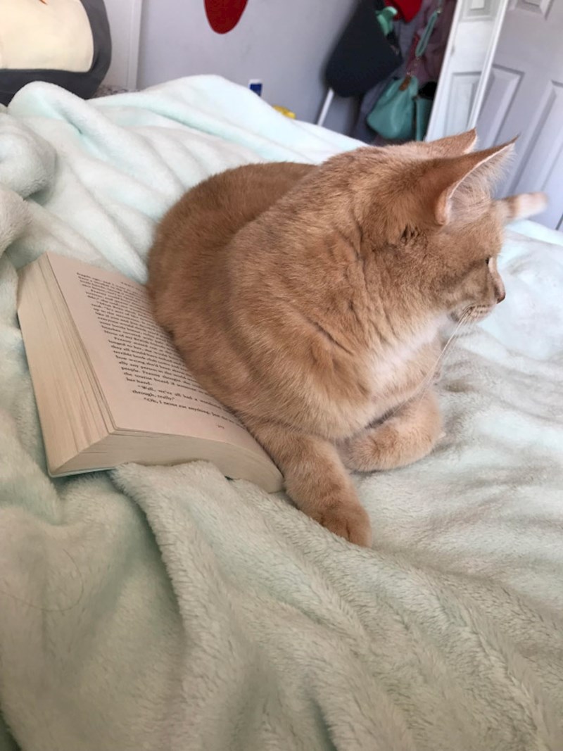 Postoji neka tajna veza između mačaka i štiva koje uzmemo u ruke kako bi se malo opustili. Naime, mačke kao da imaju neki radar za detektiranje knjiga, jer svaki put kad vlasnici krenu nešto čitati, mačke se brže bolje stvore i sjednu nasred štiva!