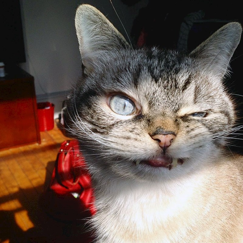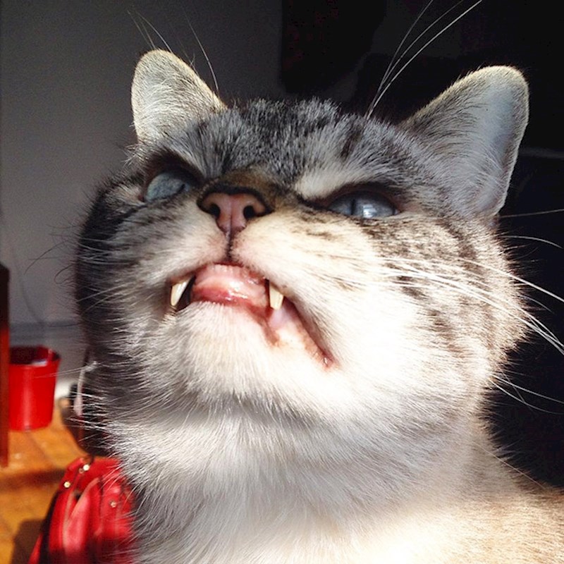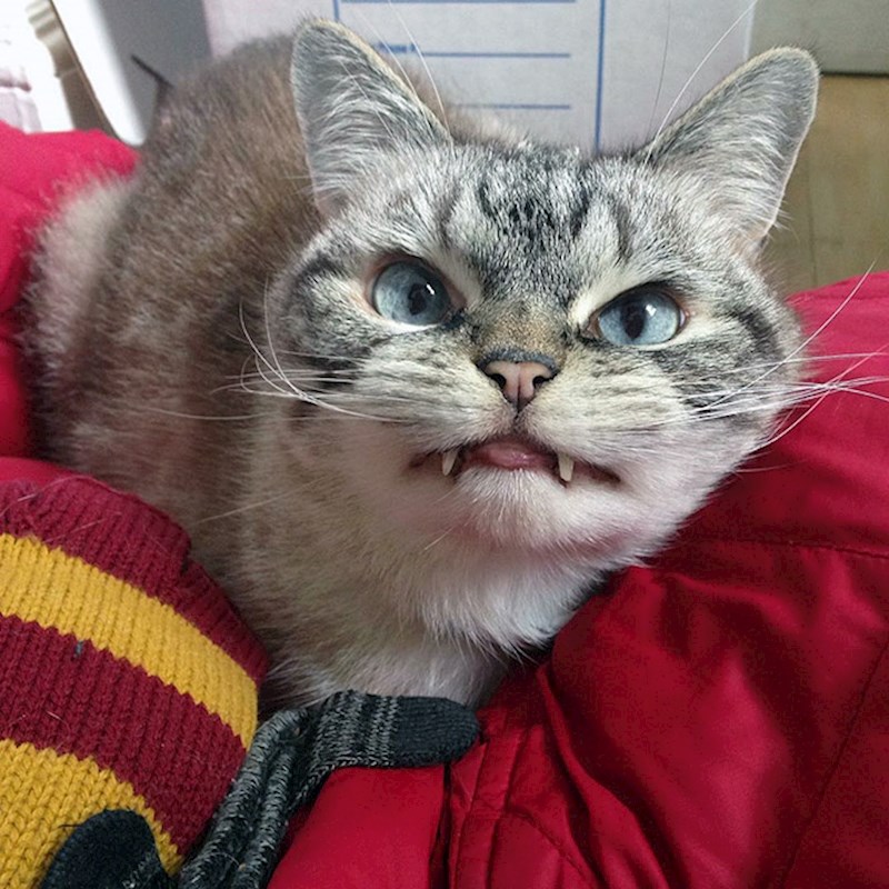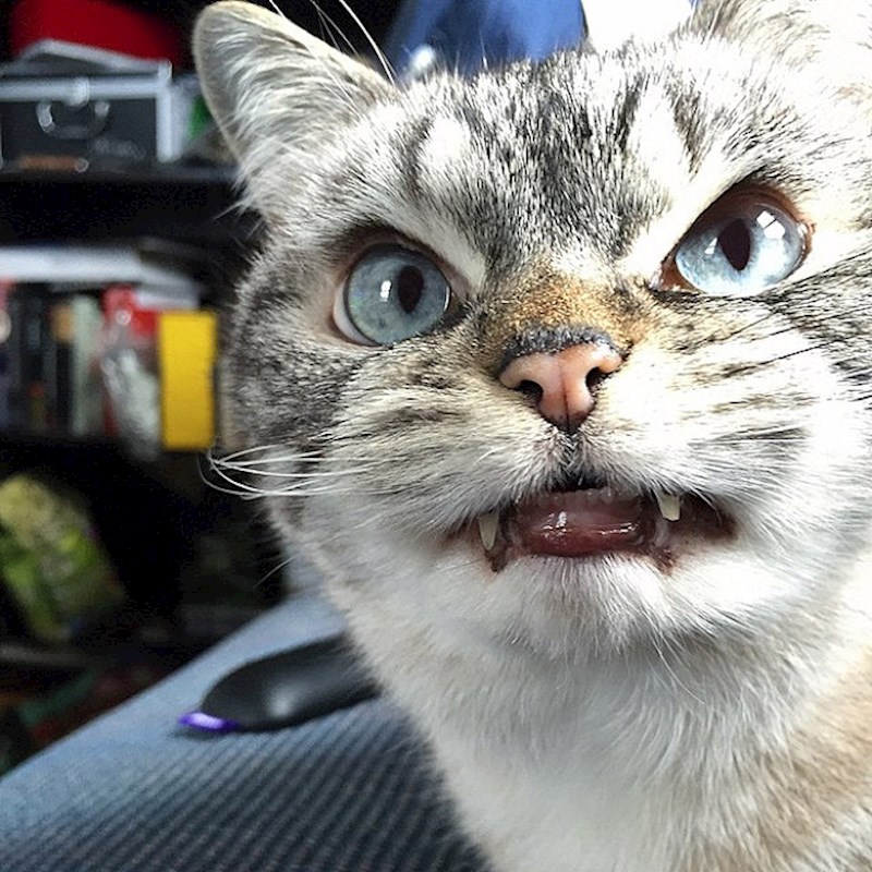 Loki je dobar i kako njegovi vlasnici kažu blesav mačak pomalo zlobnog izgleda. Spašen je iz lokalnog skloništa za životinje, a njegovi vlasnici zaljubili se u njega upravo zbog njegovih neobičnih zubi koji mu daju karakterističan izgled. Morate priznati da Loki malo podsjeća na vampira i da bi bio idealan kućni ljubimac i pomagač grofa Drakule.
