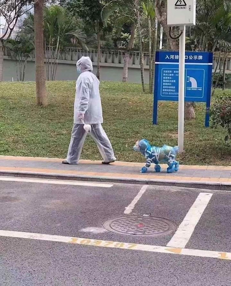 Na društvenim mrežama se pojavila slika Kineza koji je malo pretjerao sa zaštitom svog kućnog ljubimca. Doktori su potvrdili da psi, mačke i slični kućni ljubimci ne mogu širiti opasni koronavirus, no čini se da im neki ljudi ne vjeruju.
