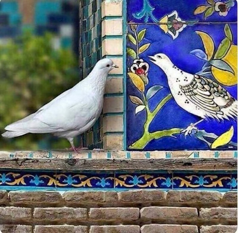 Ovog je radoznalog goluba jako zainteresirao mozaik na kojem je, čini se, prepoznao svojeg dalekog rođaka. :)