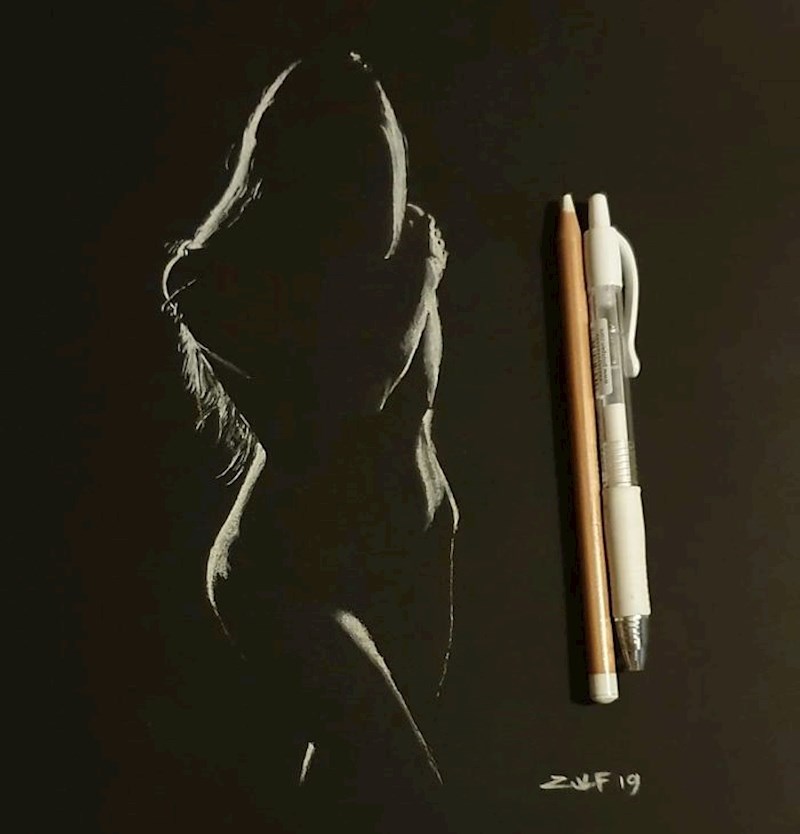 Umjetnik iz Londona poznat pod pseudonimom Zulf stvara zaista jedinstvena umjetnička djela. Usavršio je tehniku crtanja na tamnom papiru koristeći samo pastelne olovke i drveni ugljen. On se igra svjetlošću, sjenama i siluetama kako bi na zavodljiv i senzualan način portretirao zavodljivu žensku prirodu.