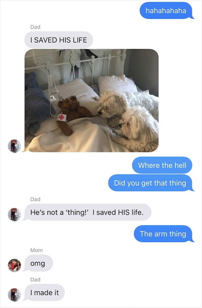 Twitter korisnica Michaella (@oohhhkayyy) nedavno je podijelila simpatičnu priču koja se brzo proširila društvenim mrežama. Njen otac se njoj i ostatku obitelj javio s "tužnim vijestima". Napisao im je da je vani na kiši našao "bebu" njihovog psa te je uzeo i odnio na liječenje.