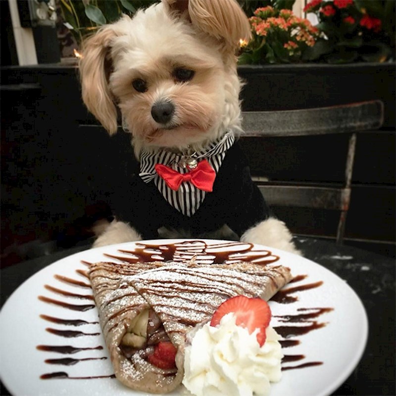 Njegova ga vlasnica redovito vodi u sve pet - friendly restorane u Los Angelesu i okolici. Sudeći prema ovim genijalnim fotkama, simpatični Popeye nema se na što požaliti. ;)