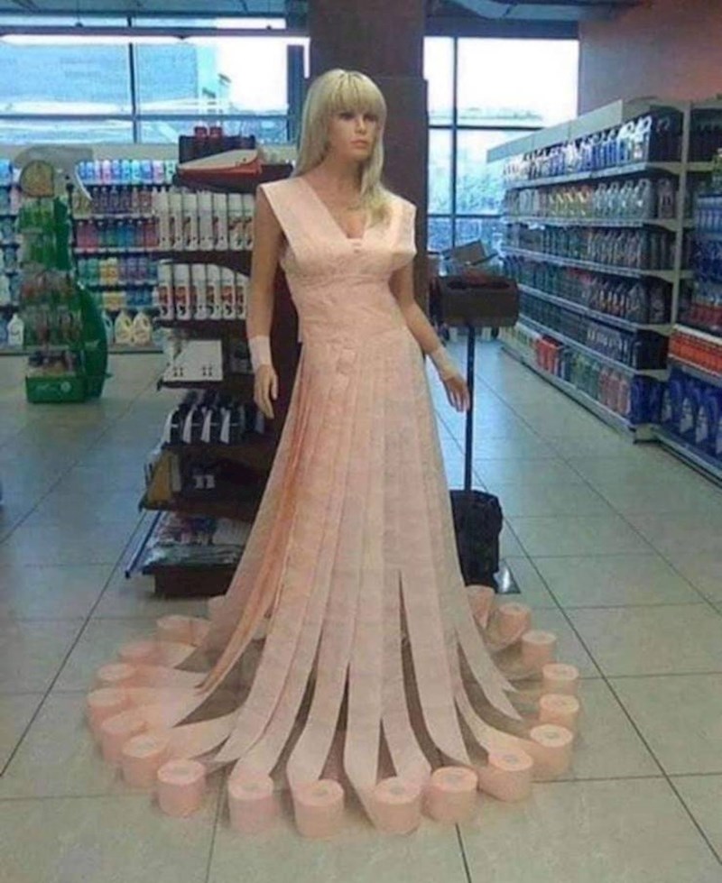 Netko je u jednom američkom supermarketu odlučio kreirati haljinu od za to posve neprimjerenog materijala.